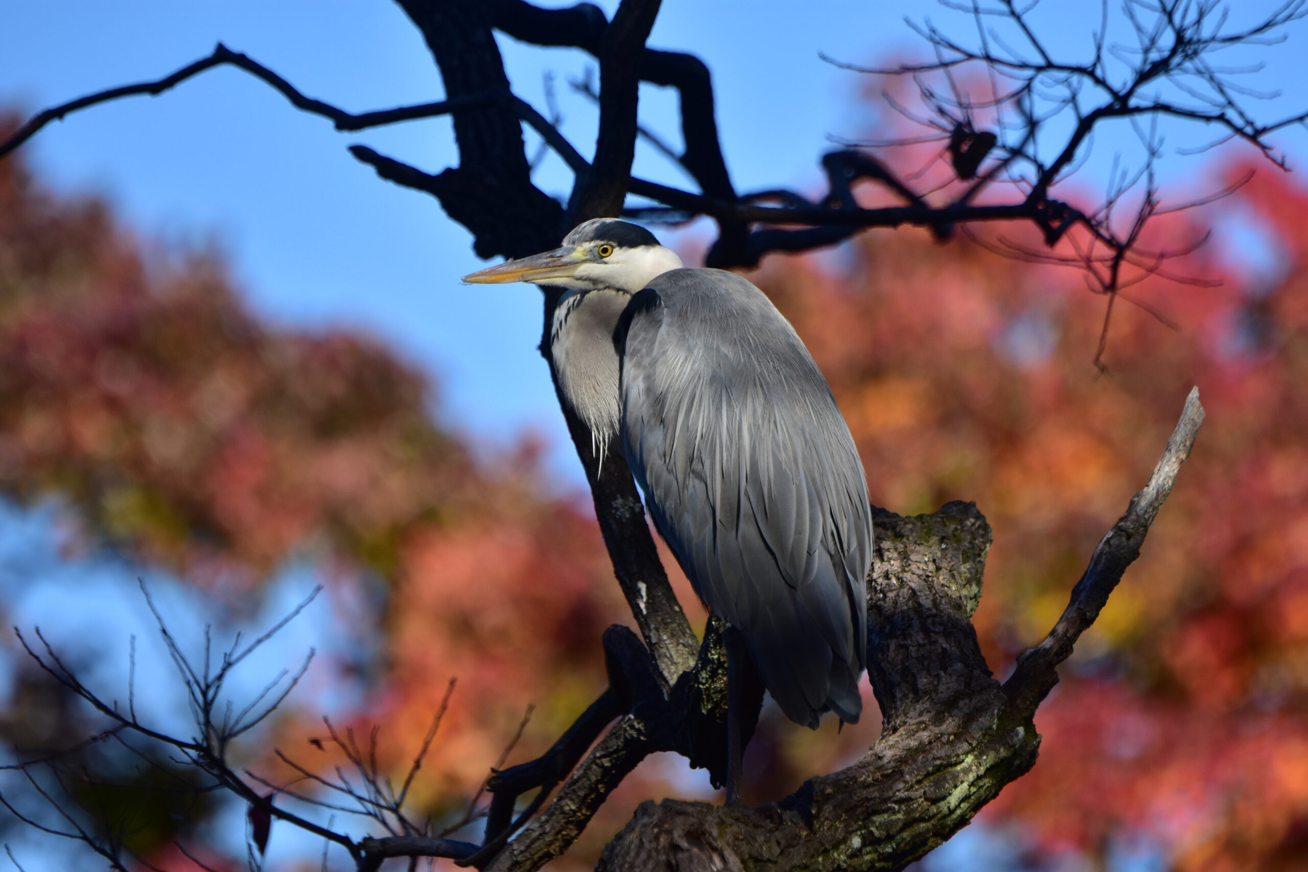 アオサギ南京ハゼをバックに止まる。 野鳥 Twitter Facebook はてブ Pocket LINE コピー 2025.11.12 11月12日午前8時50寸過ぎ、福田公園の調整池で冬鳥の飛来を待っていると、アオサギが小島の樹木に来ました。