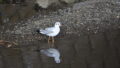 ユリカモメ強風を避けて餌さ探しています。