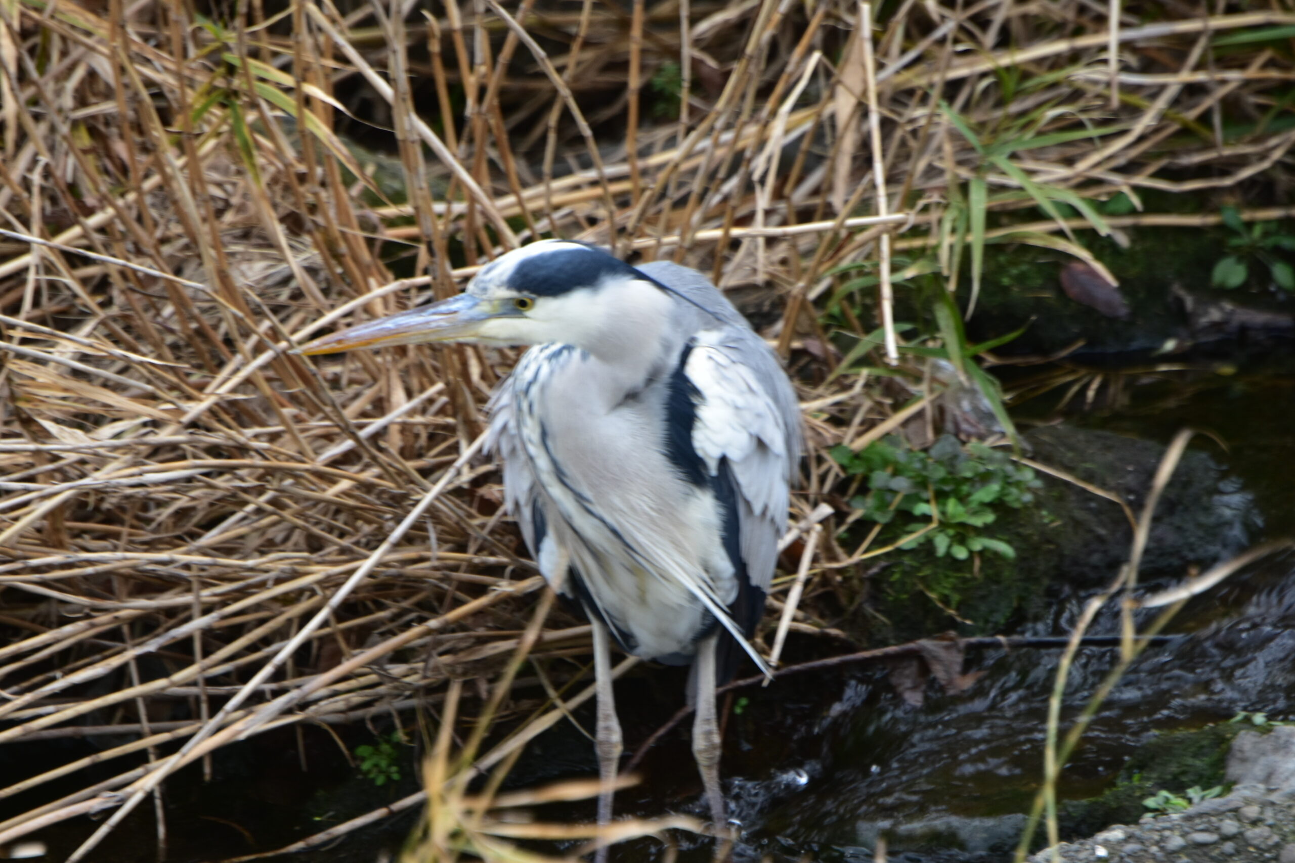 アカガシラサギ枯れた葦の中にいました。