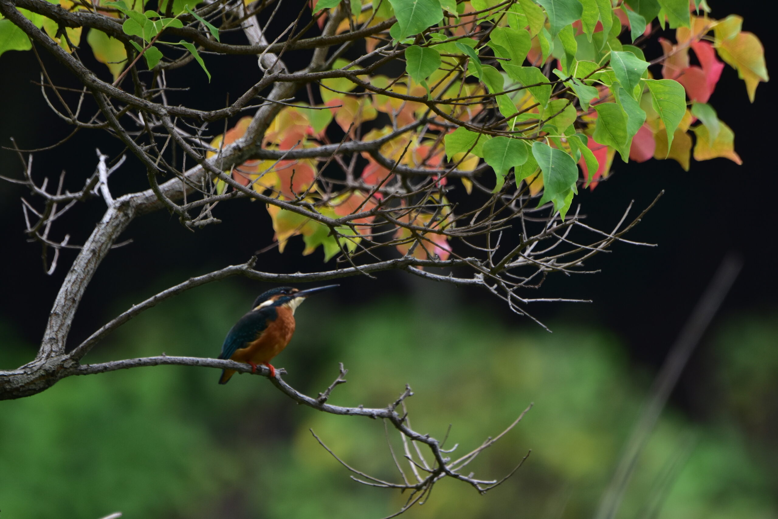 カワセミ池の小島の南京ハゼに止まる。 野鳥 Twitter Facebook はてブ Pocket LINE コピー 2025.10.13 10月13日午前8時20分過ぎ、調整池の紅葉が始まる。南京ハゼに来ました。