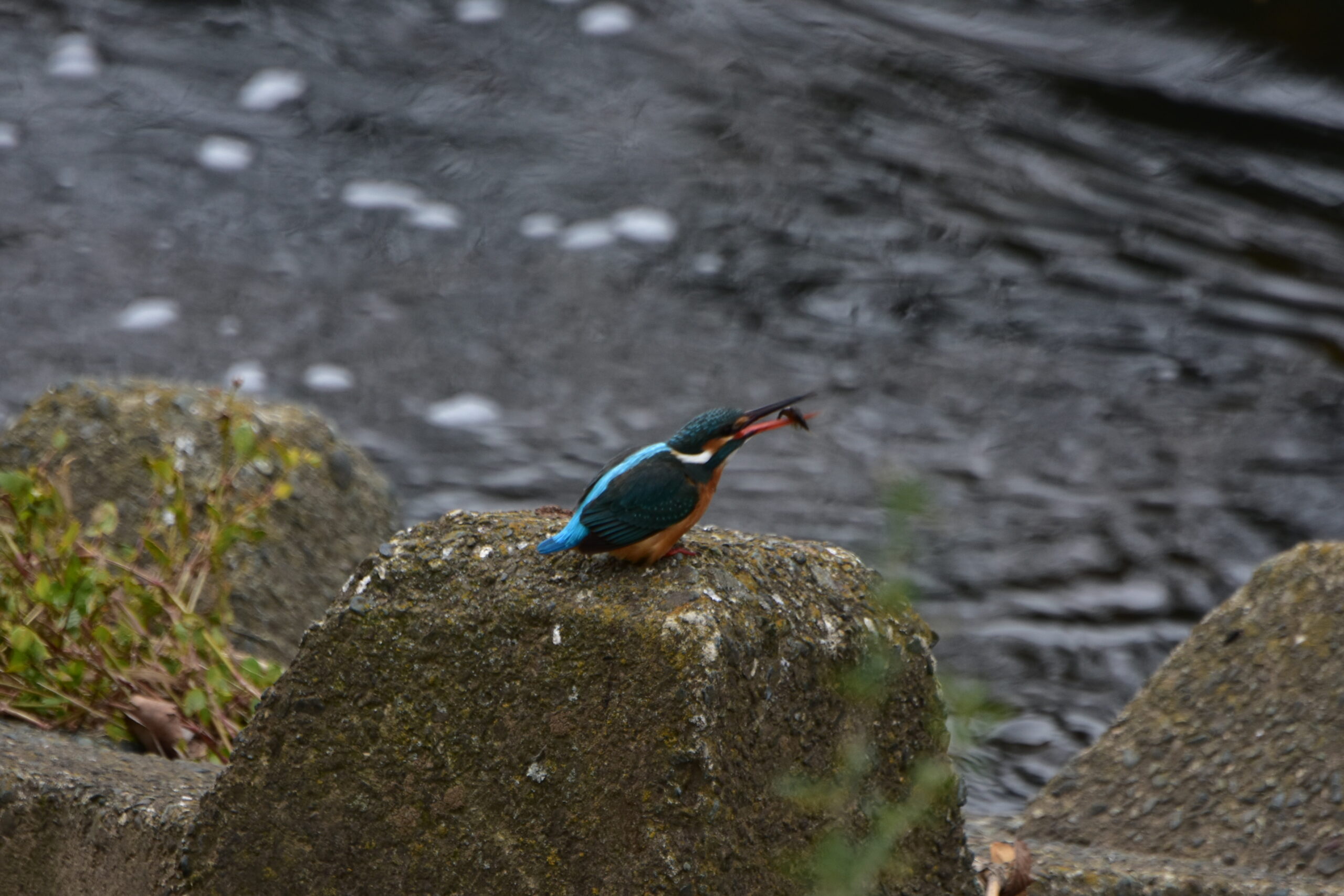 カワセミ(メス)水生昆虫捕食した。 野鳥 Twitter Facebook はてブ Pocket LINE コピー 2026.01.07 1月7日午前9に50分過ぎ、カワセミ境川でスイセン昆虫捕まえました。