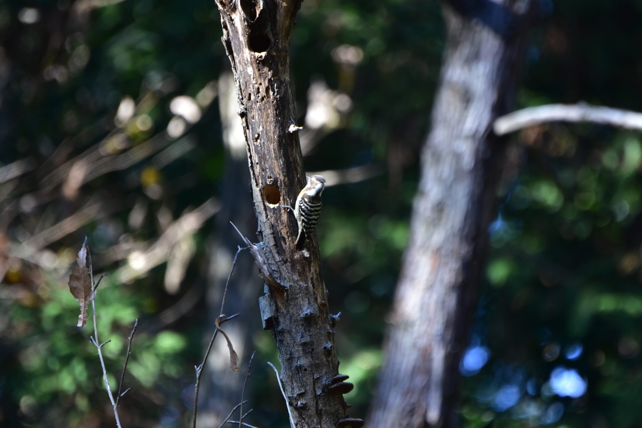 コゲラのオス巣穴を確認に来ました。 野鳥 Twitter Facebook はてブ Pocket LINE コピー 2026.01.08 1月8日午前11時50分過ぎ、緑地の枯れた立ち木、コゲラのオス(赤斑あり)巣穴に来ましたが補修しないで飛ぶ。
