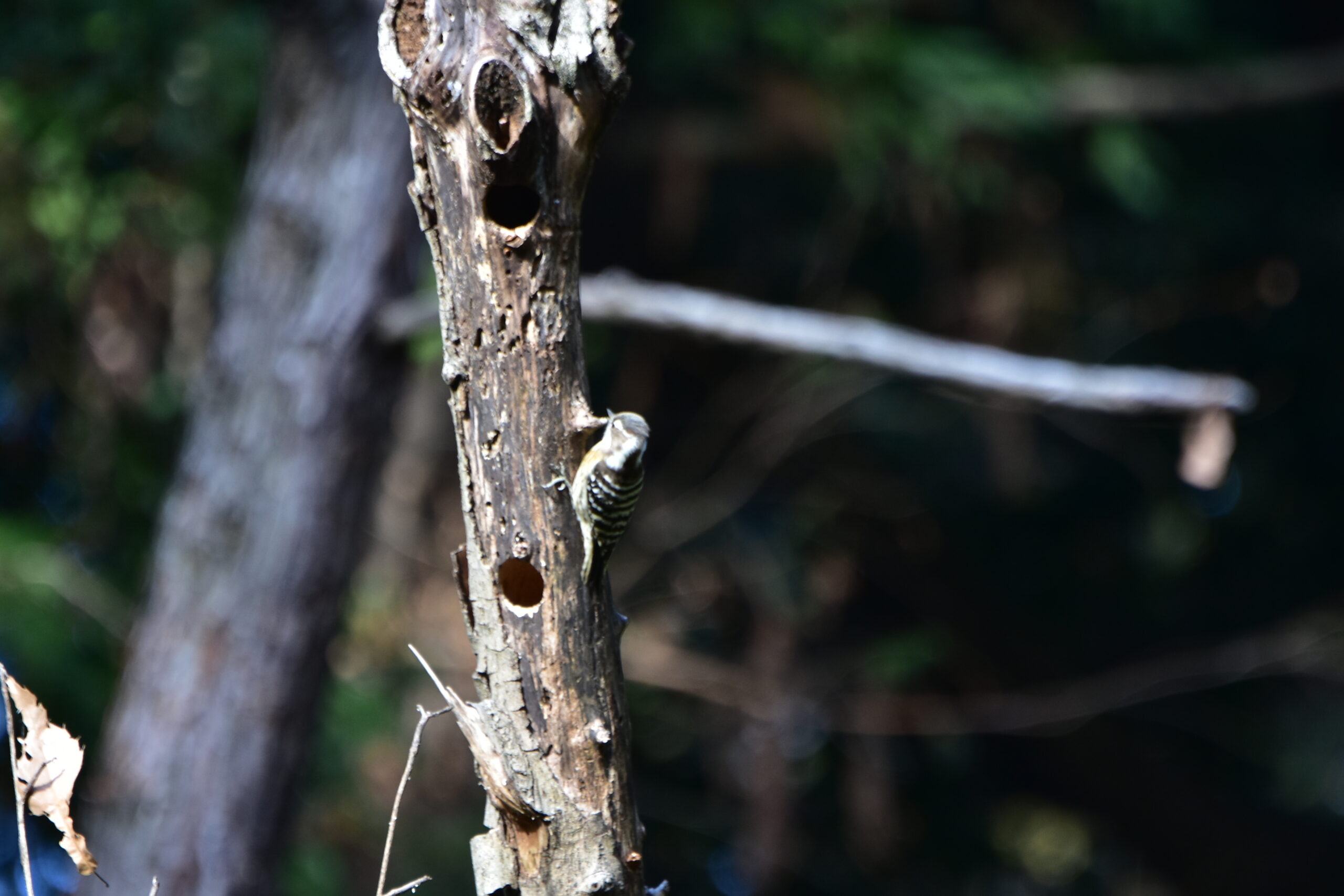 コゲラ(オス)巣作りしています。早い! 野鳥 Twitter Facebook はてブ Pocket LINE コピー 2026.01.05 1月5日緑地の枯れた立ち木で、コゲラ(オス・赤斑あり)が12月20日過ぎから巣作りをはじめ5日には巣の中に入りました。