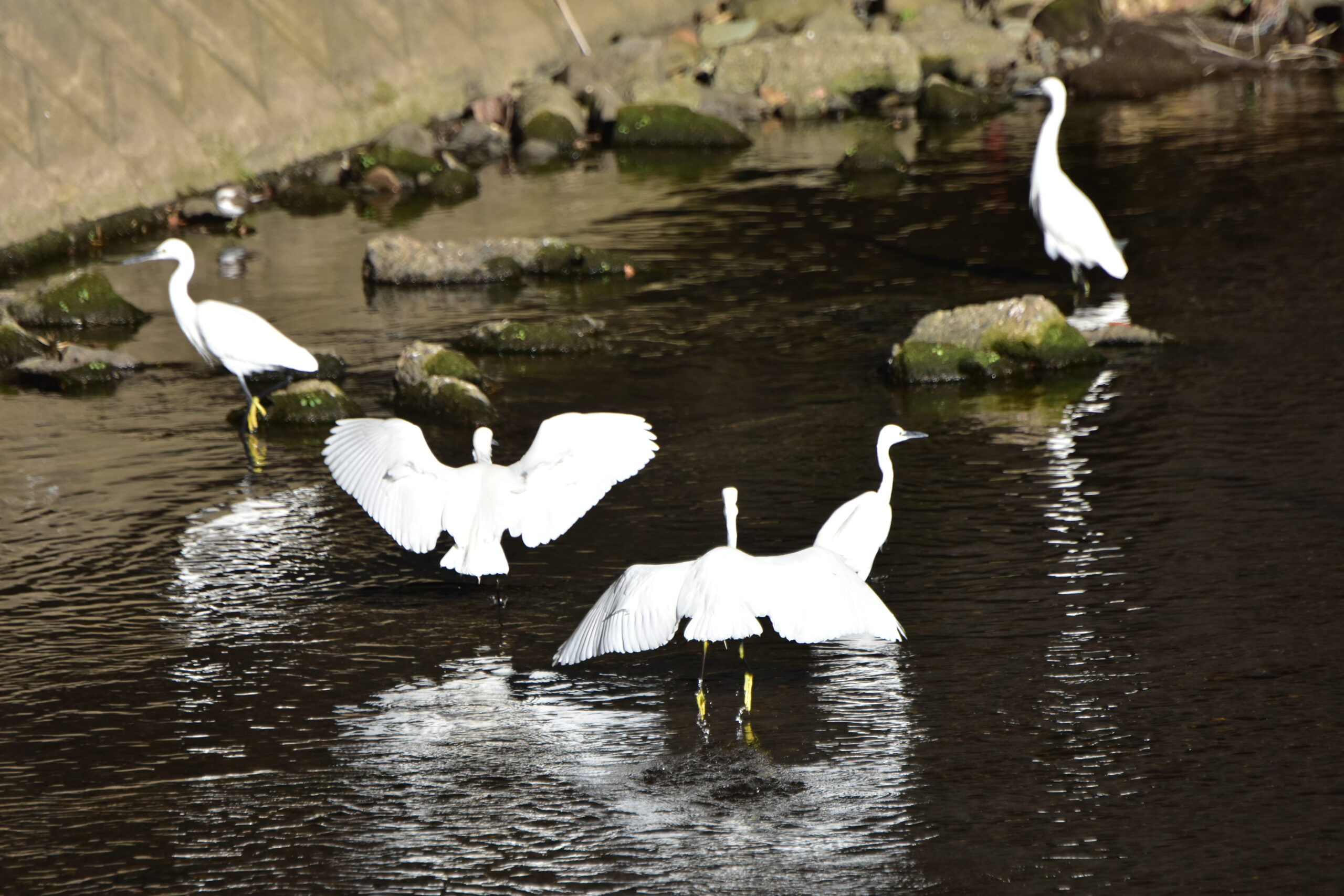 コサギの群れカワウの後を追う。 野鳥 Twitter Facebook はてブ Pocket LINE コピー 2026.01.12 1月12日午前9時過ぎ、コサギの群れがカワウの後を追いながら餌探ししています。