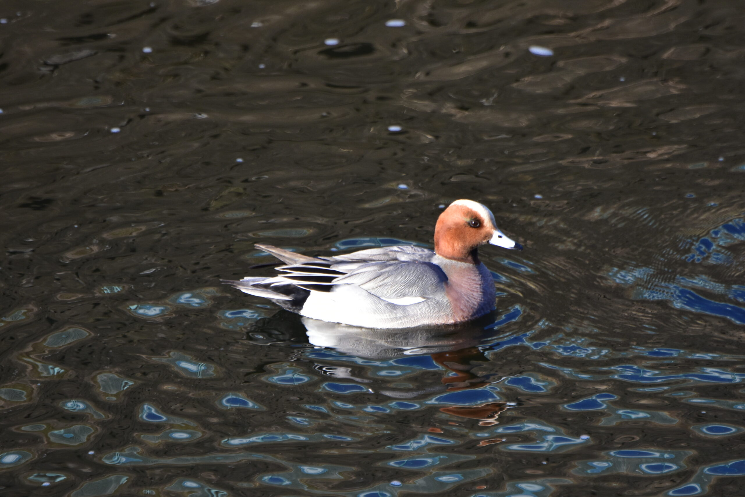 境川にヒドリガモ(オス)オカヨシガモの中にいます。 野鳥 Twitter Facebook はてブ Pocket LINE コピー 2026.01.09 1月9日午前8時30分過ぎ、境川にオカヨシガモの中に単独で、ヒドリガモ(オス)います。