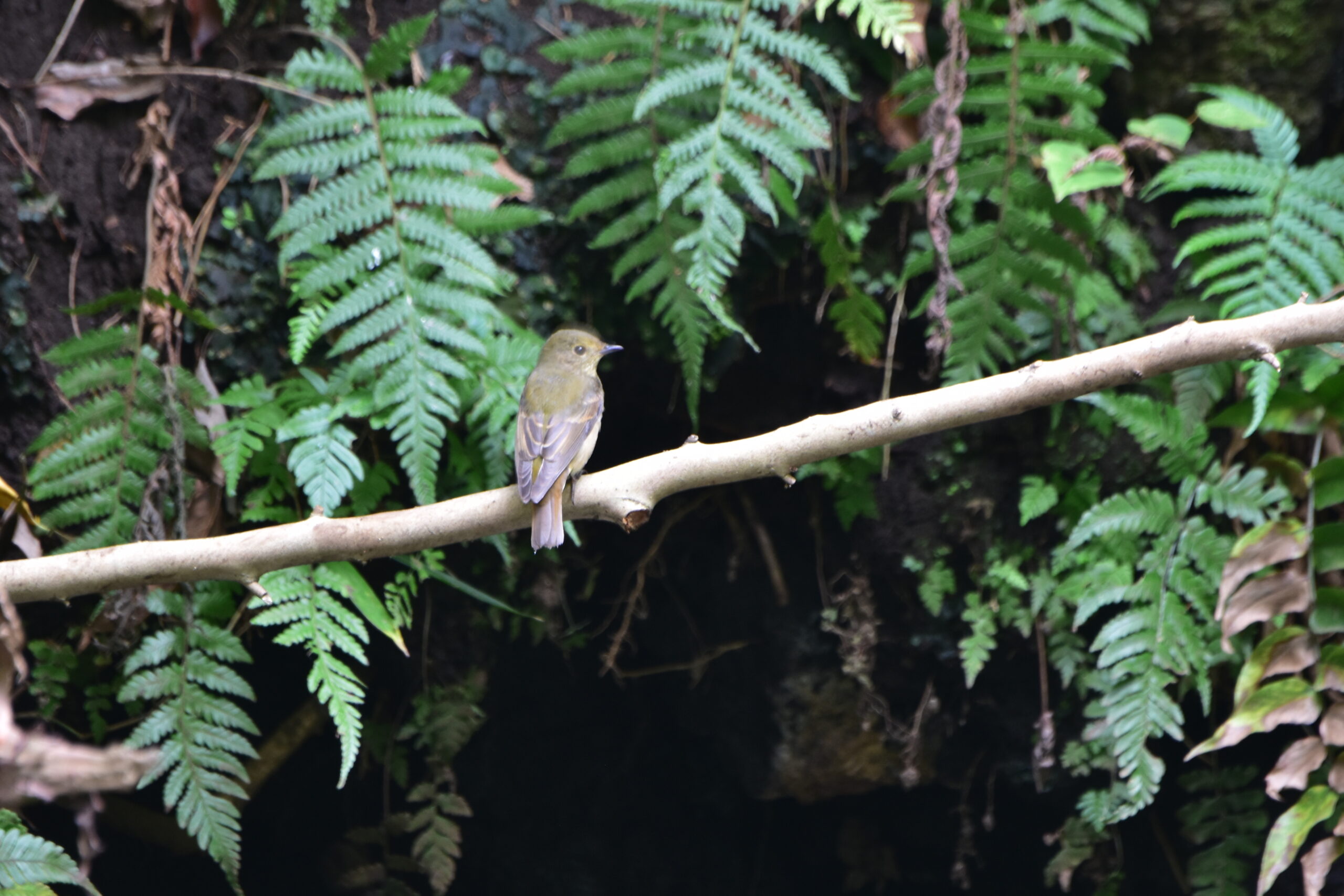 渡り途中のキビタキ(メス)です。 野鳥 Twitter Facebook はてブ Pocket LINE コピー 2025.10.14 10月14日午前10時40分過ぎ、野鳥の森の水場にキビタキ(メス)来ました。