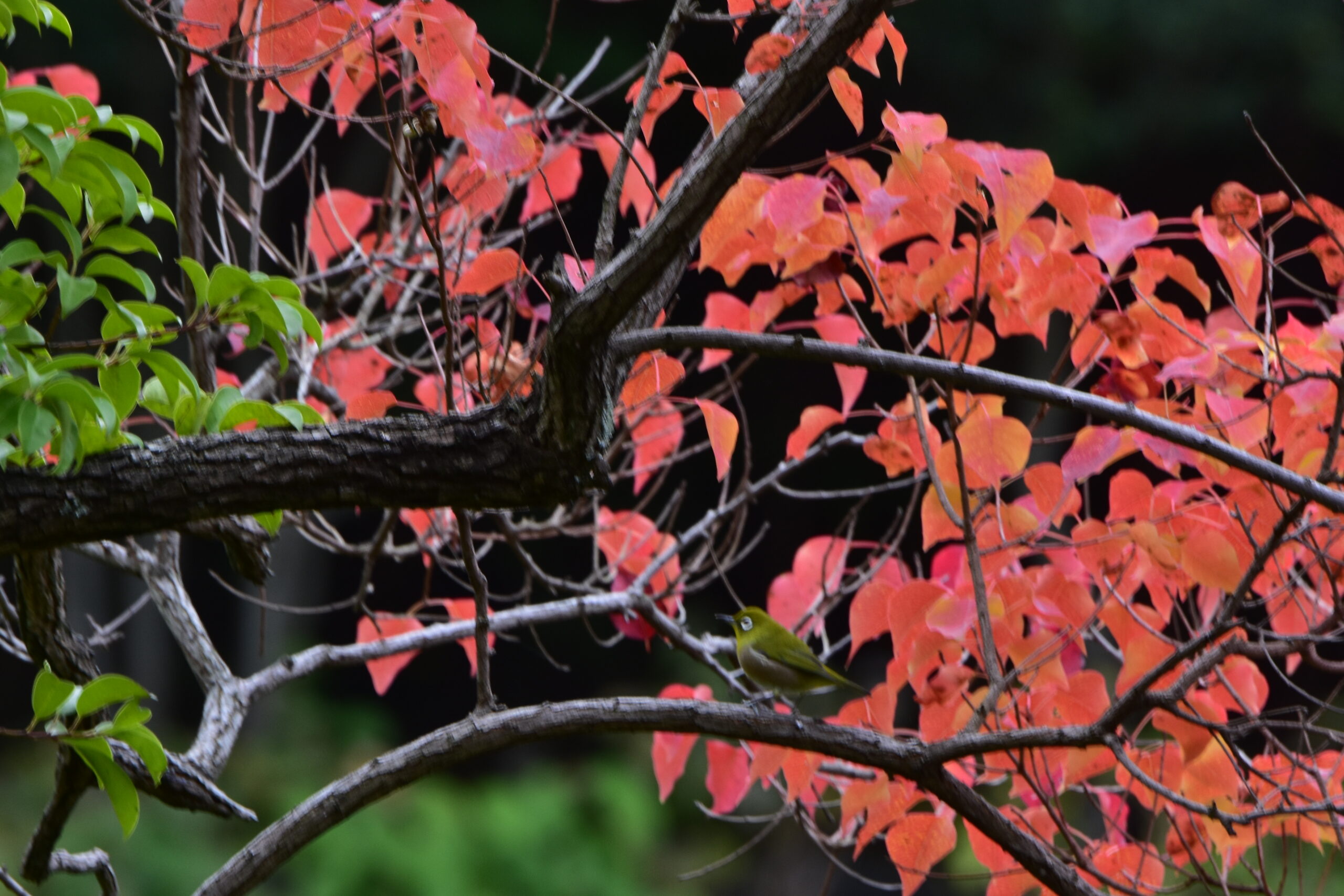 紅葉した南京ハゼに、メジロいます。 野鳥 Twitter Facebook はてブ Pocket LINE コピー 2025.11.05 11月5日午前7時50分過ぎ、紅葉した南京ハゼにメジロいます。分かりますか?