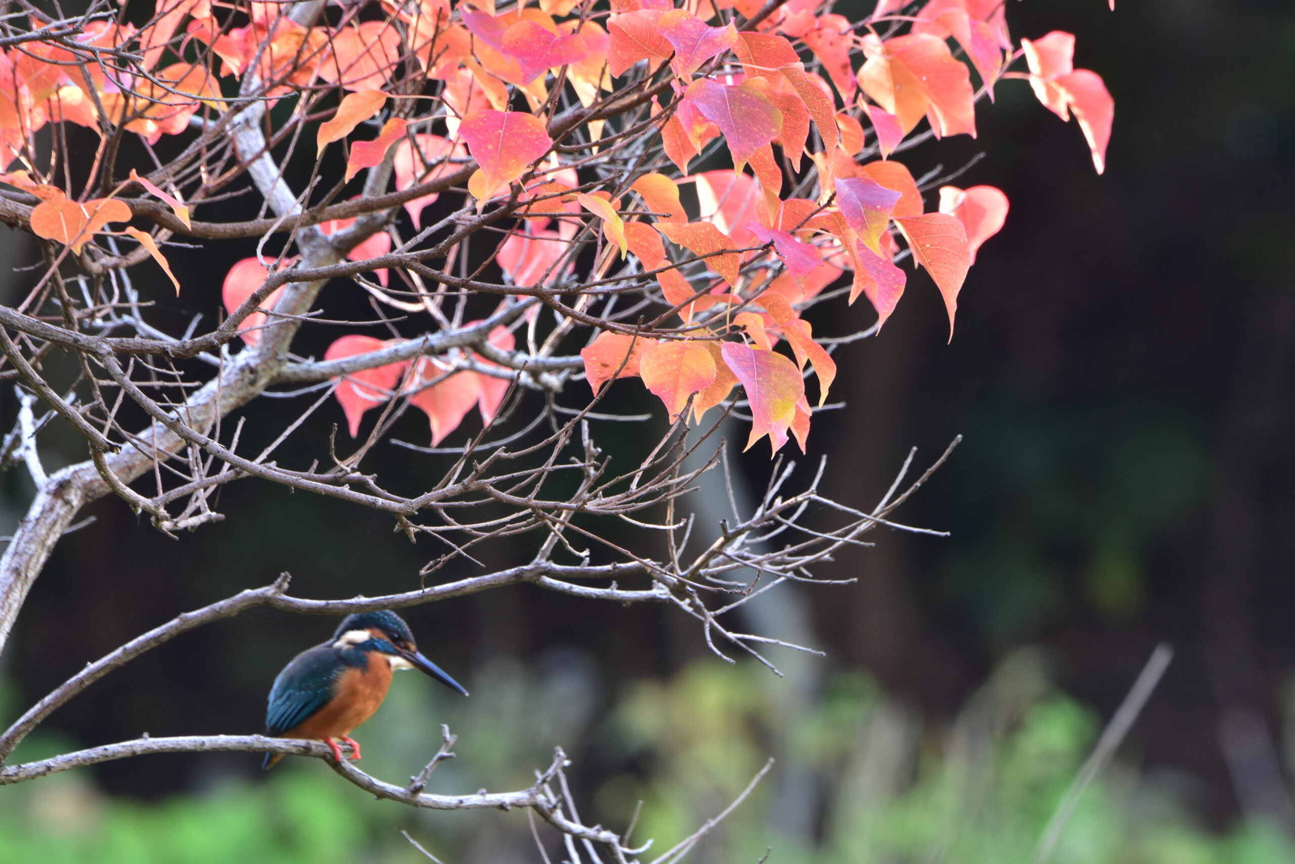 紅葉した南京ハゼにカワセミ来ました。 野鳥 Twitter Facebook はてブ Pocket LINE コピー 2025.11.05 11月4日午前7時50分過ぎ、紅葉した福田公園の南京ハゼにカワセミ止まる。