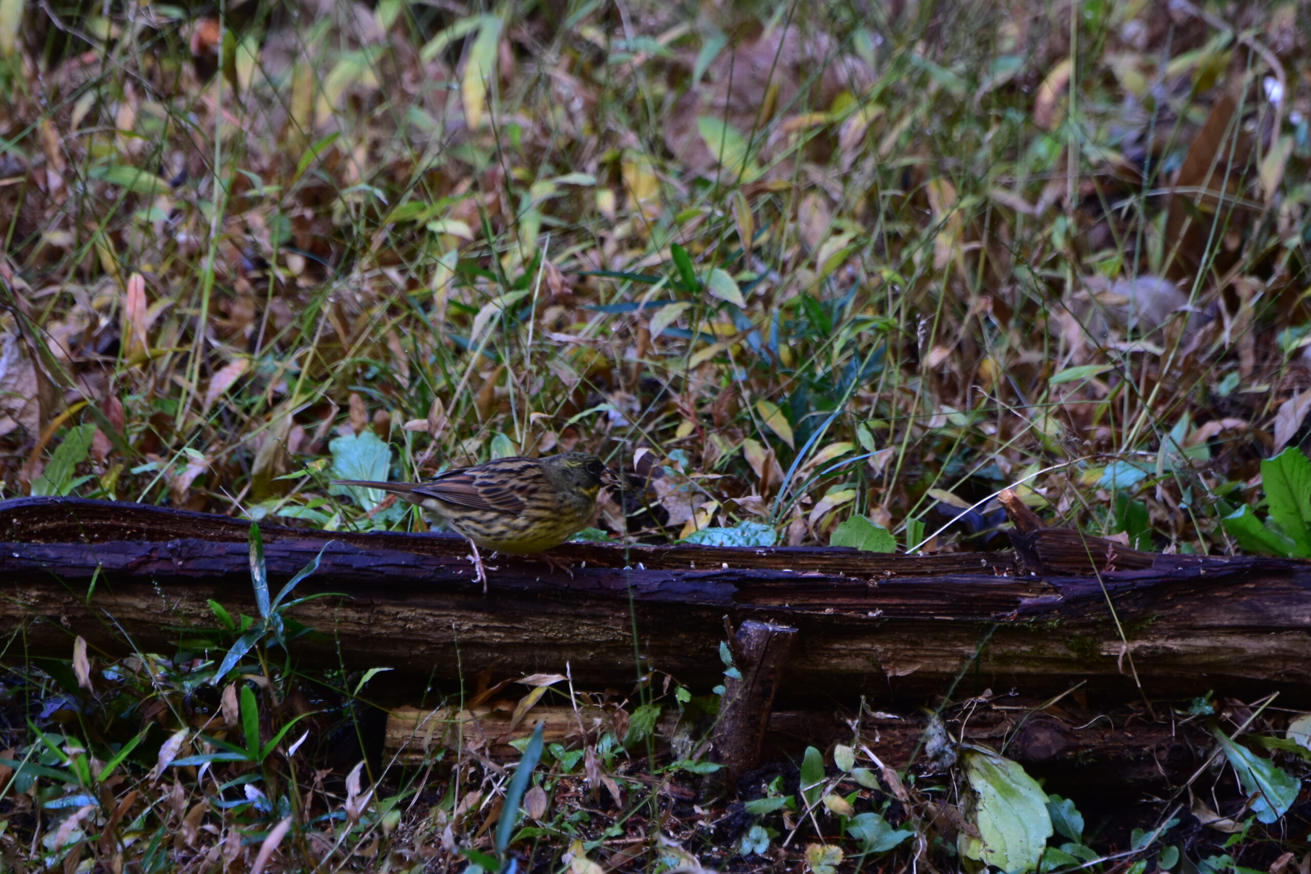 12月18日午前9時過ぎ、緑地の倒木にアオジ(オス)います。