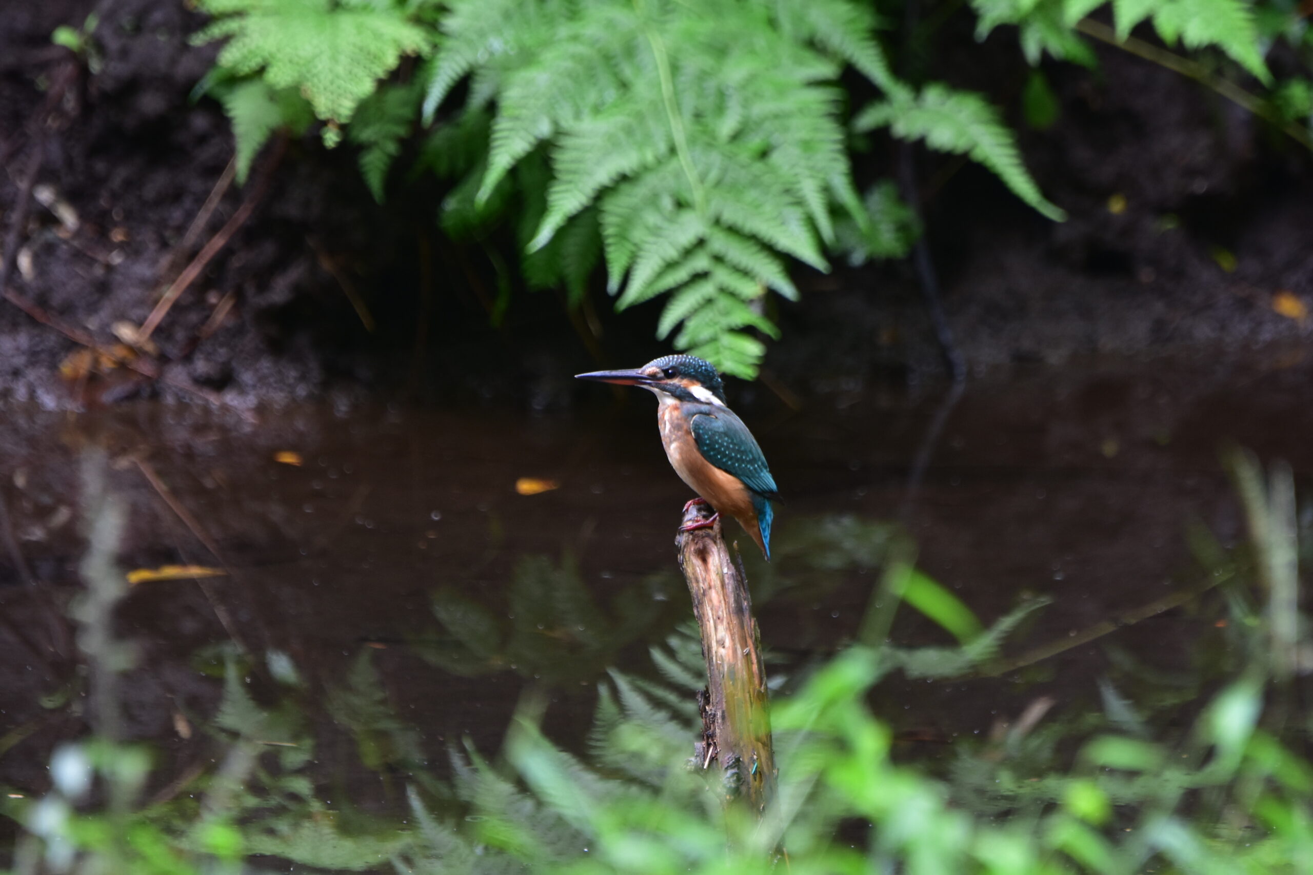 野鳥の森の蓮池にカワセミ(若いメス)来ました。 野鳥 Twitter Facebook はてブ Pocket LINE コピー 2025.10.02 10月2日午前9時50分過ぎ、カワセミ(若いメス)蓮池に来ました。