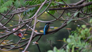 10月2日午前30分過ぎ、カワセミ(メス)も福田公園調整池のハゼの木に来ました。