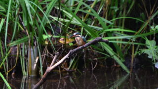 10月2日午前10時過ぎ、カワセミ(若いメス)ハス池でザリガニ捕獲しました。