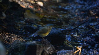 12月1日午前9時30分過ぎ、緑地の湧き水場に、ルリビタキの若オスが来ました。今季初撮影です。