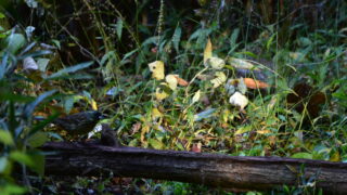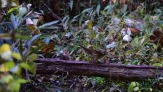 12月1日午前9時48分過ぎ、緑地の倒木に、クロジのメスも姿を見せました。