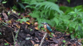 10月15日午前9時40分過ぎ、野鳥の森の古代蓮池にカワセミ(メス)ザリガニ捕食しています。毎日飛来しています。