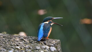野鳥 カワセミ大きな口を開ける。
