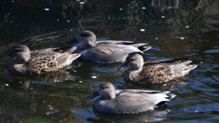 11月27日午前11時20分過ぎ、境川にオスも地味なオカヨシガモの番2組来ています。