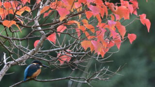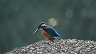 11月8日午前7時23分過ぎ、カワセミ福田公園のコンクリート上から小魚探ししています。