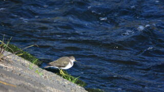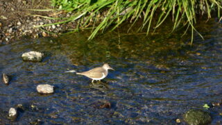 12月31日午前9時過ぎ、境川でイソシギ採食中です。