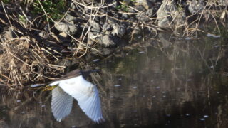 野鳥 アカガシラサギ河川上流に飛ぶ!