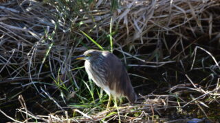野鳥 アカガシラサギ枯れた葦原にしました。動きません。