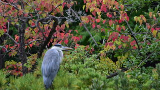 10月27日午前9時過ぎ飛来した。ゴイサギの幼鳥ハゼの枝を移動していました。