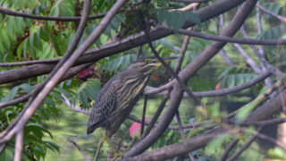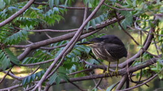 野鳥 ゴイサギ(幼鳥)夜行性なのにハゼの枝で動きました。