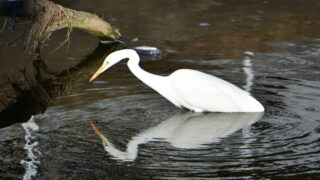 1月24日午前9時42分過ぎ、河川で北風吹く中のアカガシラサギです。