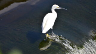 10月5日午前11時過ぎ、コサギ境川の堰で小魚狙う。