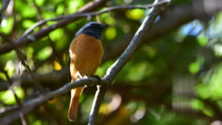 11月15日午前8時過ぎ、福田公園の紅葉した。ハゼの枝にキセキレイ来ました。遠い!