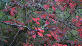 野鳥 紅葉したハゼに、キセキレイ来ました。