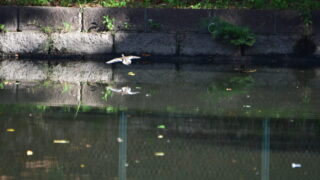 9月23日午前8時過ぎ、福田公園調整池のコンクリート壁からダイビングして小魚捕食しました。