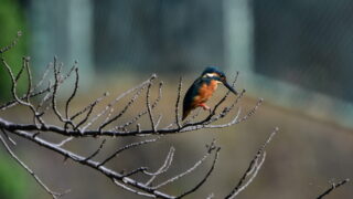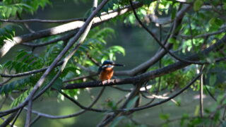 9月23日午前7時30分過ぎ、福田公園調整池に飛来した。カワセミ若いオスです・
