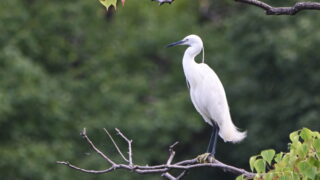 9月16日午前7時過ぎ、コサギ調整池の小島に生える枝で羽繕いしていました。夏は頭部に2本の長い冠羽がある。
