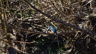 1月22日午前8時50分過ぎ、境川でカワセミ大きなオイカワ捕獲して、川岸の枝に打ち付けています。